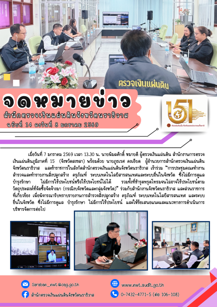 การประชุมคณะทำงานสำรวจและทำรายงานสิ่งปลูกสร้าง ครุภัณฑ์ ระบบเทคโนโลยีสารสนเทศและระบบอื่นในจังหวัด ซึ่งไม่มีการดูแล บำรุงรักษา ไม่มีการใช้ประโยชน์หรือใช้ประโยชน์ไม่ได้ รวมทั้งที่ชำรุดทรุดโทรมจนไม่อาจใช้ประโยชน์ตามวัตถุประสงค์ที่จัดซื้อจัดจ้างมา (กรณีงบจังหวัดและกลุ่มจังหวัด)กิจกรรมตรวจสอบ, ภาพกิจกรรมมกราคม 8, 2026กุมภาพันธ์ 19, 2026 Post Views: 39